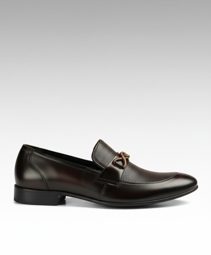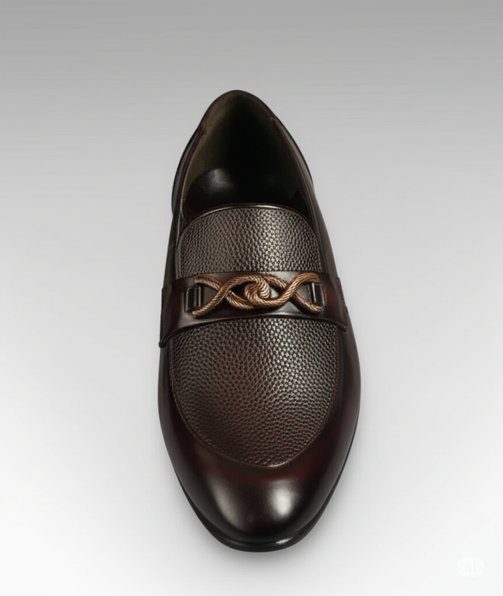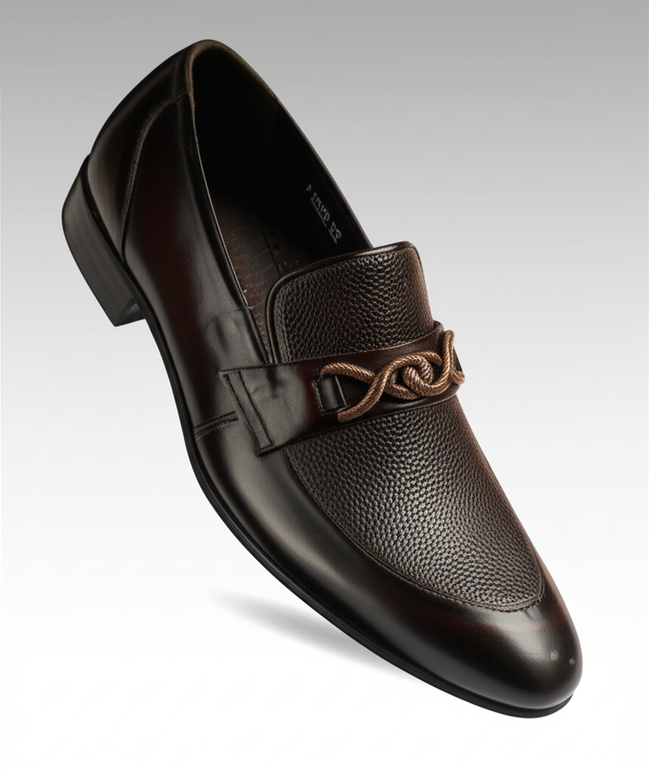Step into refined style with our Elite Knot Detail Leather Loafers, designed for the modern gentleman who appreciates both sophistication and comfort. These exquisite shoes, crafted with an eye for detail and superior materials, are sure to elevate any outfit, from business casual to evening wear. The rich, deep brown hue and distinctive textured leather panels create a look of understated luxury that will turn heads wherever you go.