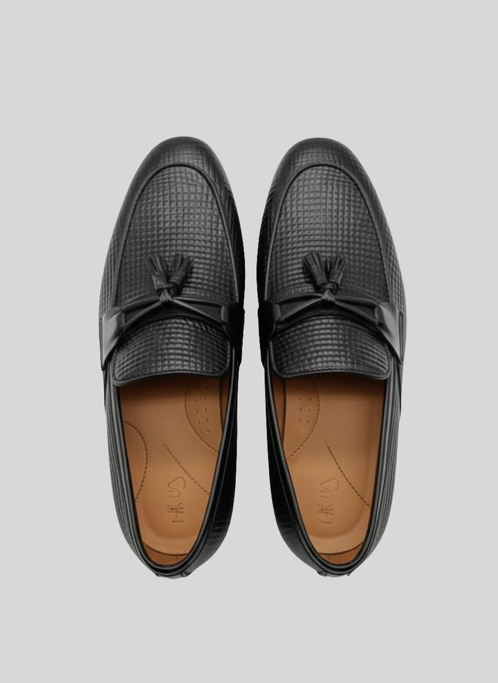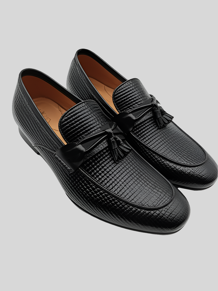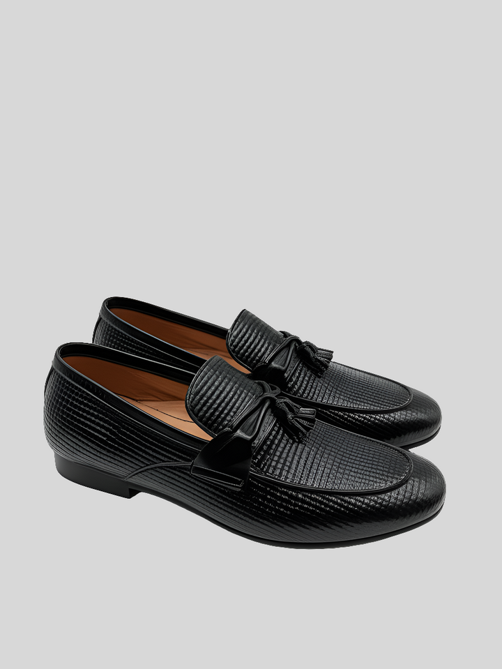 Step into refined style with our exquisite men's tassel loafers. Designed for the modern gentleman, these shoes blend classic sophistication with a unique, eye-catching texture. The sleek silhouette and elegant tassel detail make them the perfect choice for any occasion, whether you're heading to a business meeting or a special event. Crafted to offer both style and substance, they are a timeless addition to any wardrobe.
