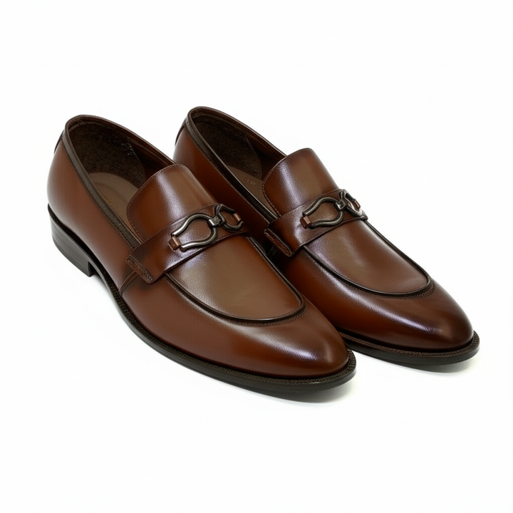Effortlessly combine classic style with modern sophistication with our Men's Tan Leather Horsebit Loafers. As seen in the images, these loafers showcase a rich tan hue, expertly crafted from smooth leather, and accented with a stylish horsebit detail. Perfect for both professional settings and smart-casual occasions, these shoes are a must-have for the discerning gentleman in Lahore, Punjab, Pakistan, and beyond.
