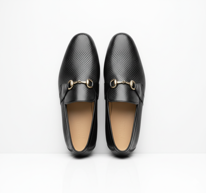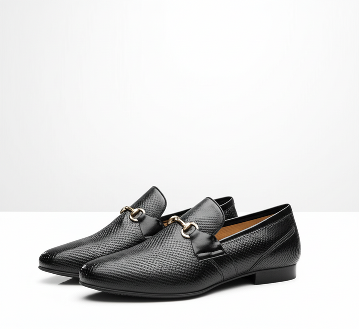 Embrace sleek, modern style with our Men's Horsebit Loafers. Designed for the contemporary gentleman, these shoes blend a minimalist silhouette with rich texture and a classic gold accent. They are the perfect choice for dressing up your professional attire or adding a touch of elegance to a smart-casual look. The subtle yet distinctive design ensures you'll always look polished and put-together.