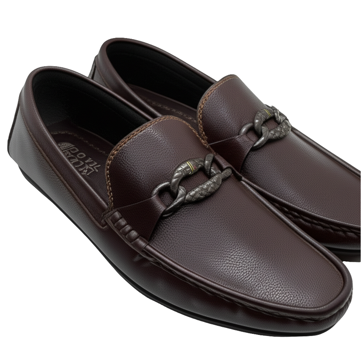 Introducing our Premium Leather Chain Loafers, where timeless design meets contemporary flair. Crafted with exquisite attention to detail, these loafers boast a rich, pebbled leather finish and a distinctive chain embellishment that sets them apart. Whether you choose the classic black or the sophisticated brown, these shoes are designed for the modern individual who appreciates comfort, quality, and a touch of unique style. Perfect for both formal gatherings and upscale casual events in Lahore and beyond.