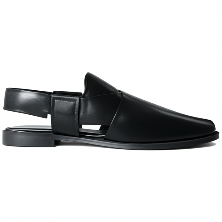 Discover the perfect blend of modern sophistication and ultimate comfort with our sleek black leather sandals. Crafted from high-quality, smooth black leather, these sandals exude a minimalist elegance that's ideal for any occasion. Their refined design and superior finish ensure you step out in style, reflecting the meticulous craftsmanship synonymous with Lahore's finest.