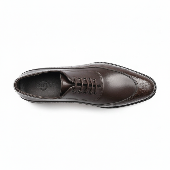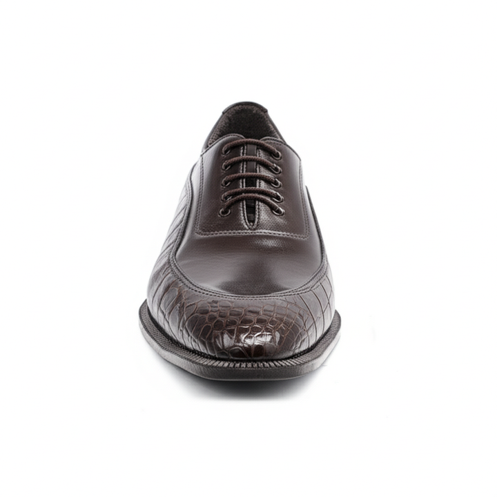 Elevate your footwear game with our Sophisticated Brown Croc-Embossed Derbies. These distinctive shoes, crafted with precision in Lahore, Punjab, Pakistan, merge classic style with an exotic touch. The rich brown leather is elegantly complemented by subtle croc-embossed detailing on the heel and vamp, creating a look that is both refined and unique. Perfect for the modern gentleman who appreciates luxurious textures and a standout design, these Derbies are ideal for adding character to your professional or formal ensembles.