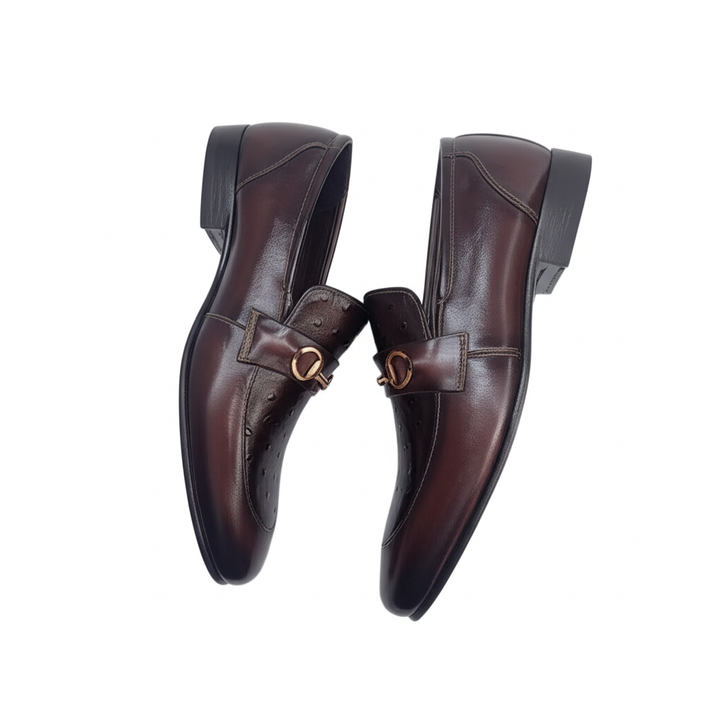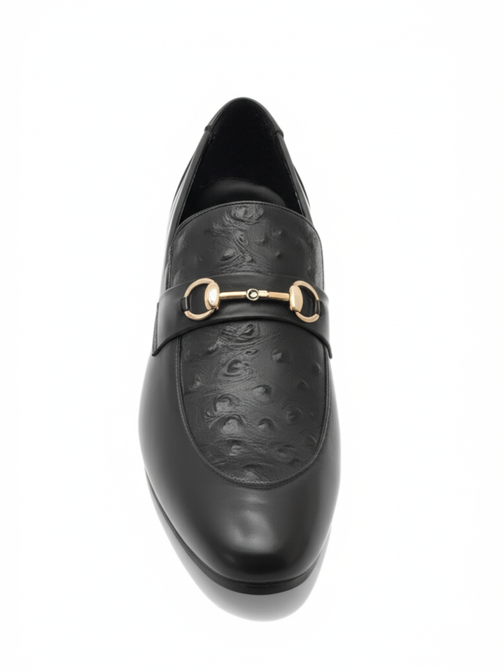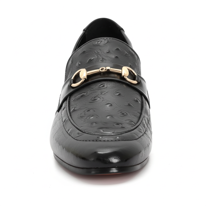 Step into a world of refined elegance with our Men's Ostrich Textured Horsebit Loafers. Merging timeless design with a touch of modern luxury, these shoes are crafted for the discerning gentleman who values both style and substance. The distinctive texture and gleaming horsebit hardware create a sophisticated focal point, ensuring you make a memorable impression whether you're in the boardroom or at a special event.